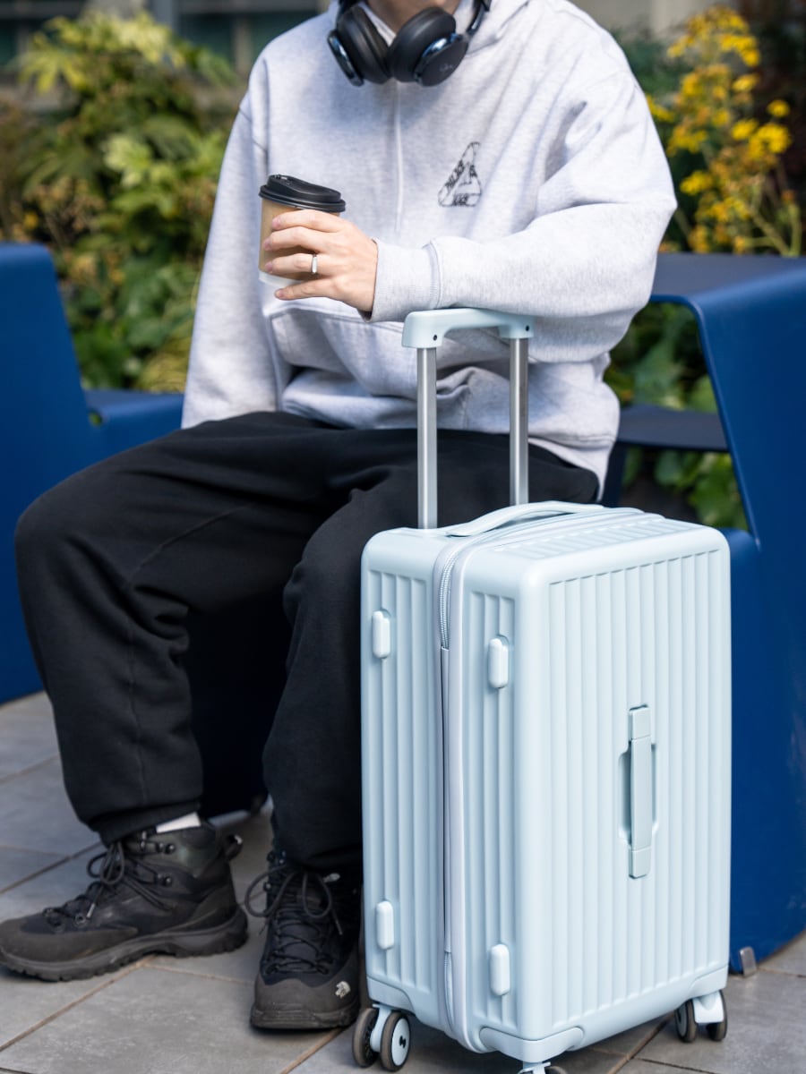 【トランク型スーツケース】 従来の半分ずつの収納ではなく、革新的な3:7型デザインを採用。深めの収納スペースと、通常のスーツケースでは収まりきらない荷物を立てて収納できるので、旅行の荷物整理がスッキリと完了します。もう片方には細かい小物や日用品を収納でき、乾湿分離のデザインでより衛生的に収納可能。荷物の出し入れが非常に便利で、整理整頓が簡単です。 【多機能・カップホルダー&フック付き台座】 スーツケースの裏面には、折り畳み式カップホルダーが搭載されており、テイクアウトした飲み物や折り畳み傘などを手軽に置くことができます。さらに、横にした際に使える台座にはフックが付いており、コンビニで買ったものやちょっとした荷物をかけるのに便利。両手が自由になるので、旅行中の負担を軽減し、より快適な旅をサポートします。 【PC+ABS樹脂素材使用】 高強度で耐衝撃性に優れ、軽量ながら衝撃から荷物をしっかり守る。耐久性とデザイン性を兼ね備えた丈夫なスーツケース。長期旅行にも安心してご使用いただけます。 【360度回転キャスター/静音&耐衝撃】 高弾性で衝撃吸収性に優れた静音キャスターを採用。360度自由に回転し、方向転換もスムーズ。混雑した場所や段差のある道でも快適に移動できます。 【多段階調節キャリーバー】 身長や使用シーンに合わせて、スムーズに高さ調節ができる多段階キャリーバーを採用。移動中もストレスなく、自分にぴったりの高さで快適に操作できます。 【世界標準「TSAロック」搭載】 アメリカをはじめとする世界30か国以上で導入されているTSAロックを採用。セキュリティ性が高く、海外旅行でも安心してご利用いただけます。ダイヤル式なので鍵の持ち歩きは不要。鍵を紛失する心配がなく、番号はお好きな暗証番号に自由に設定可能です。 ロックしたまま荷物を預けることができ、空港の税関検査もスムーズ。旅行中のストレスを軽減します。 ※鍵穴は空港職員が検査時に専用ツールで使用するためのもので、本製品に鍵は付属しておりません。 ※初期設定の暗証番号は「000」です。ご使用前に変更してください。 ※画像と実物のカラーにつきまして、全てスタジオ撮影素材を使用していますが、お客様のデバイスや設定によって見え方が異なる場合があり、イメージと若干異なる場合がございます。 ※サイズ表画像をご確認の上、ご注文ください。